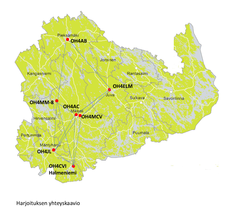 Kaikki sanomayhteydet toimivat. Myös Juvan kautta saatiin suora yhteys Pieksämäelle.