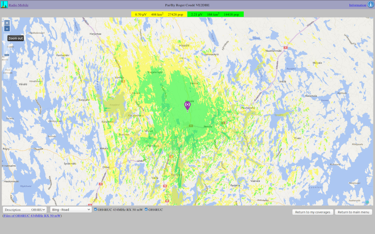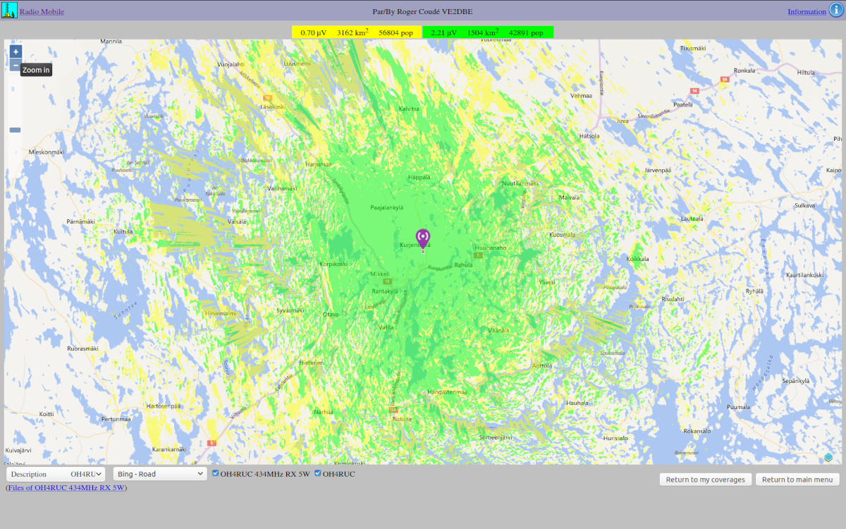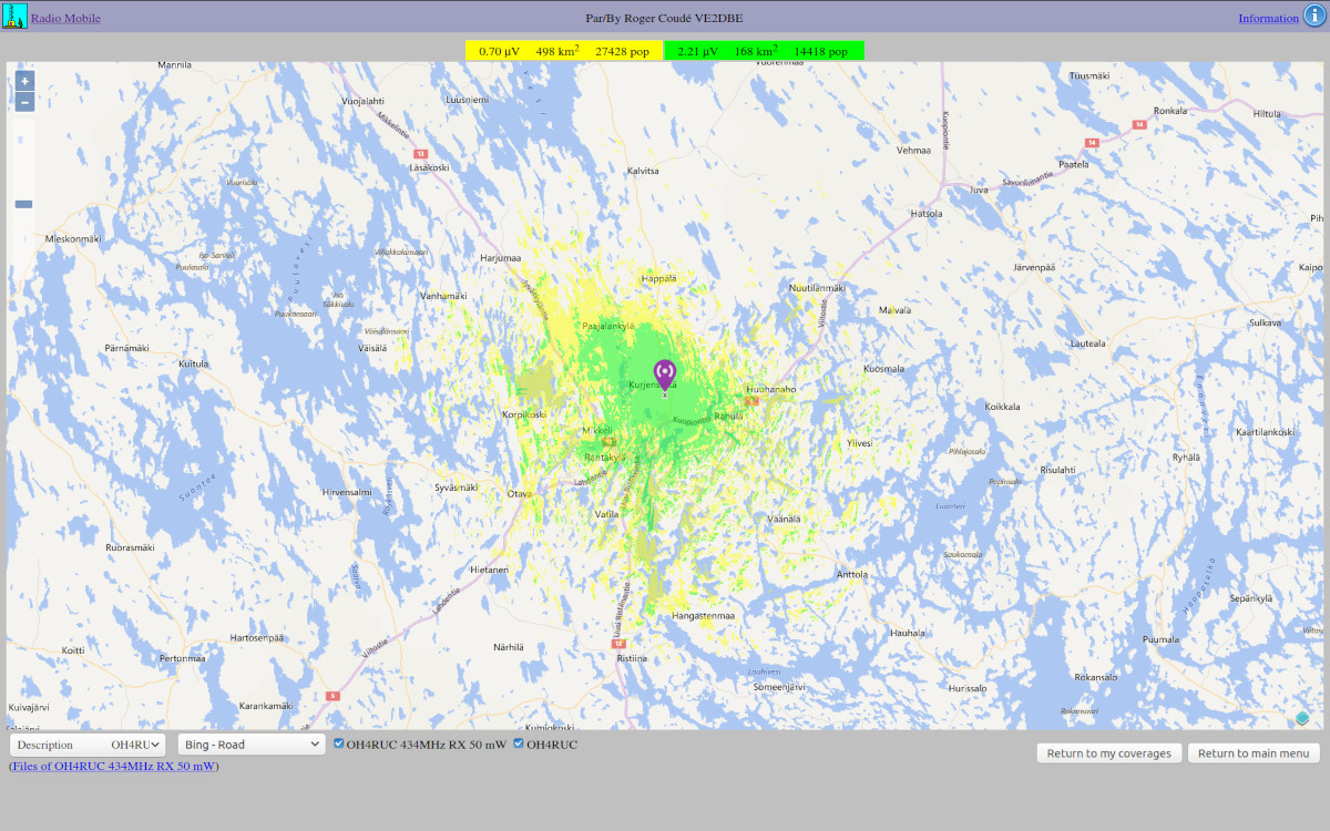 OH4RUC UHF-toistimen kuuluvuuskartat