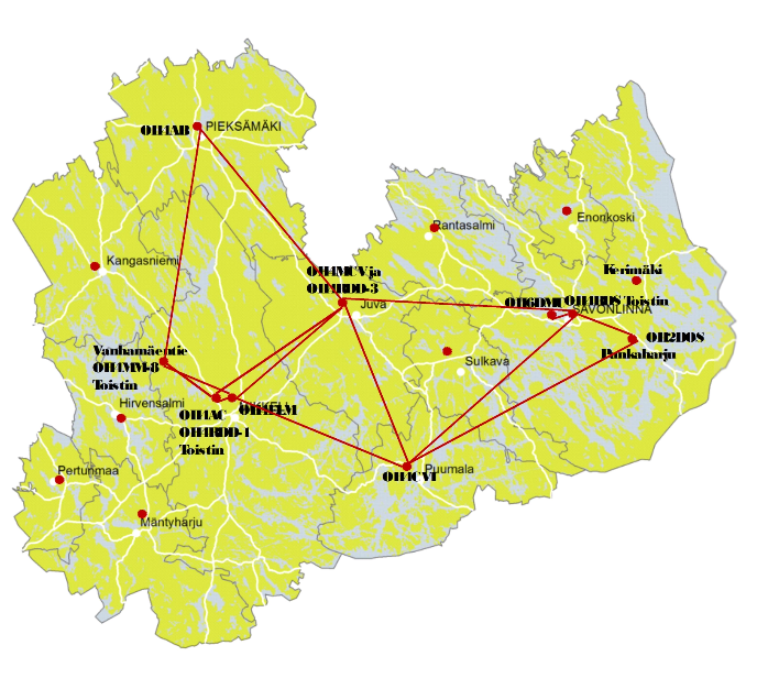 Verkon toistimet sijaitsivat Juvalla (OH4RDD-3), Savonlinnassa (OH4RDS), Mikkelissä (OH4RDD-1) ja Vanhamäentien varressa (OH4MM-8).